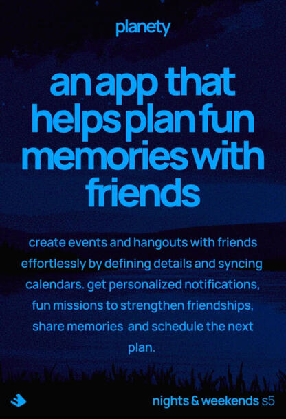 Making plans with friends shouldn't be a chore, but in our busy, digital-first world, it often is. Keeping meaningful connections alive can feel like an uphill battle, specially if you are an introvert in your 20s (like me). Planety makes it easy to organize events, connect with friends, and cherish the moments that matter.